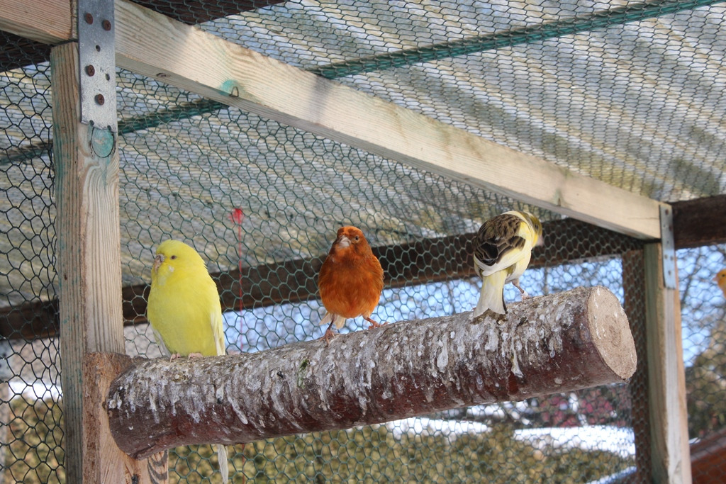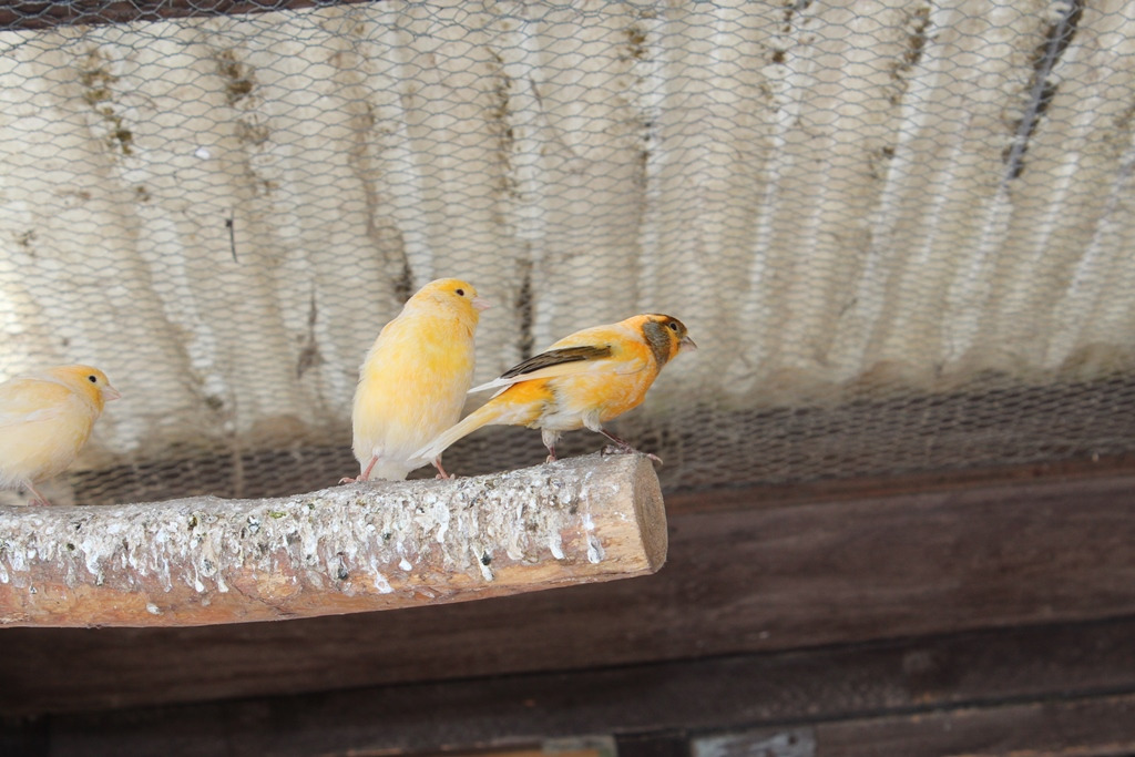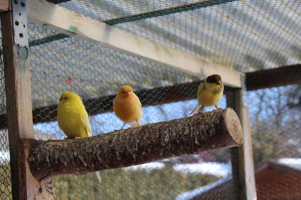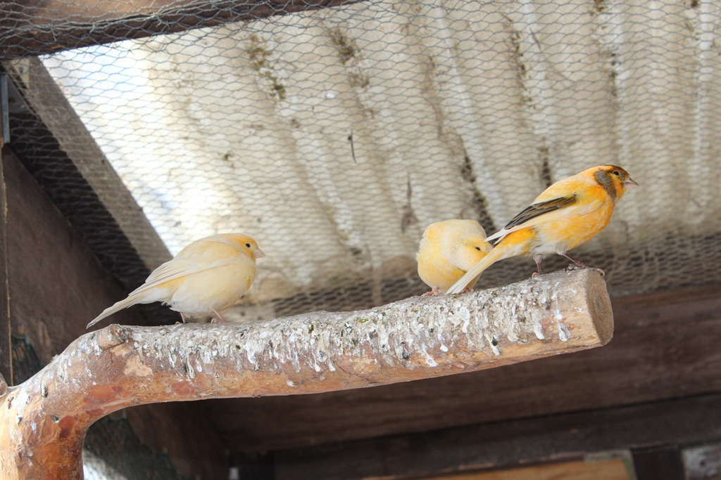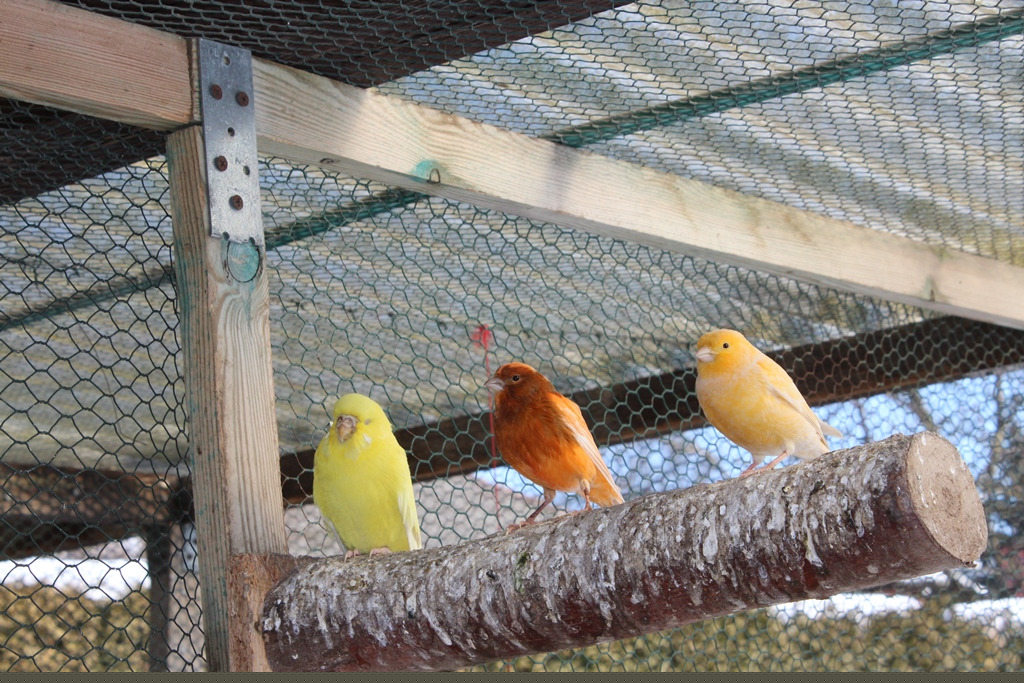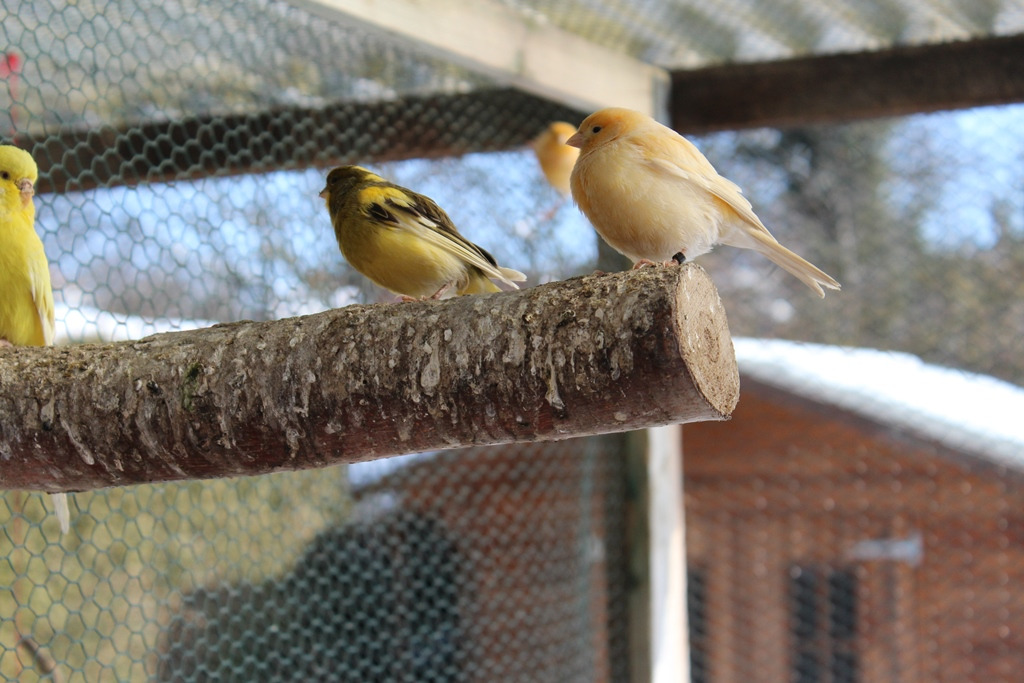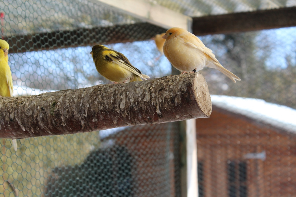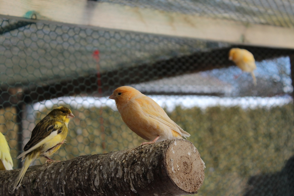 Kanarien in vielen Farbvarianten sind bereit zur Abgabe.